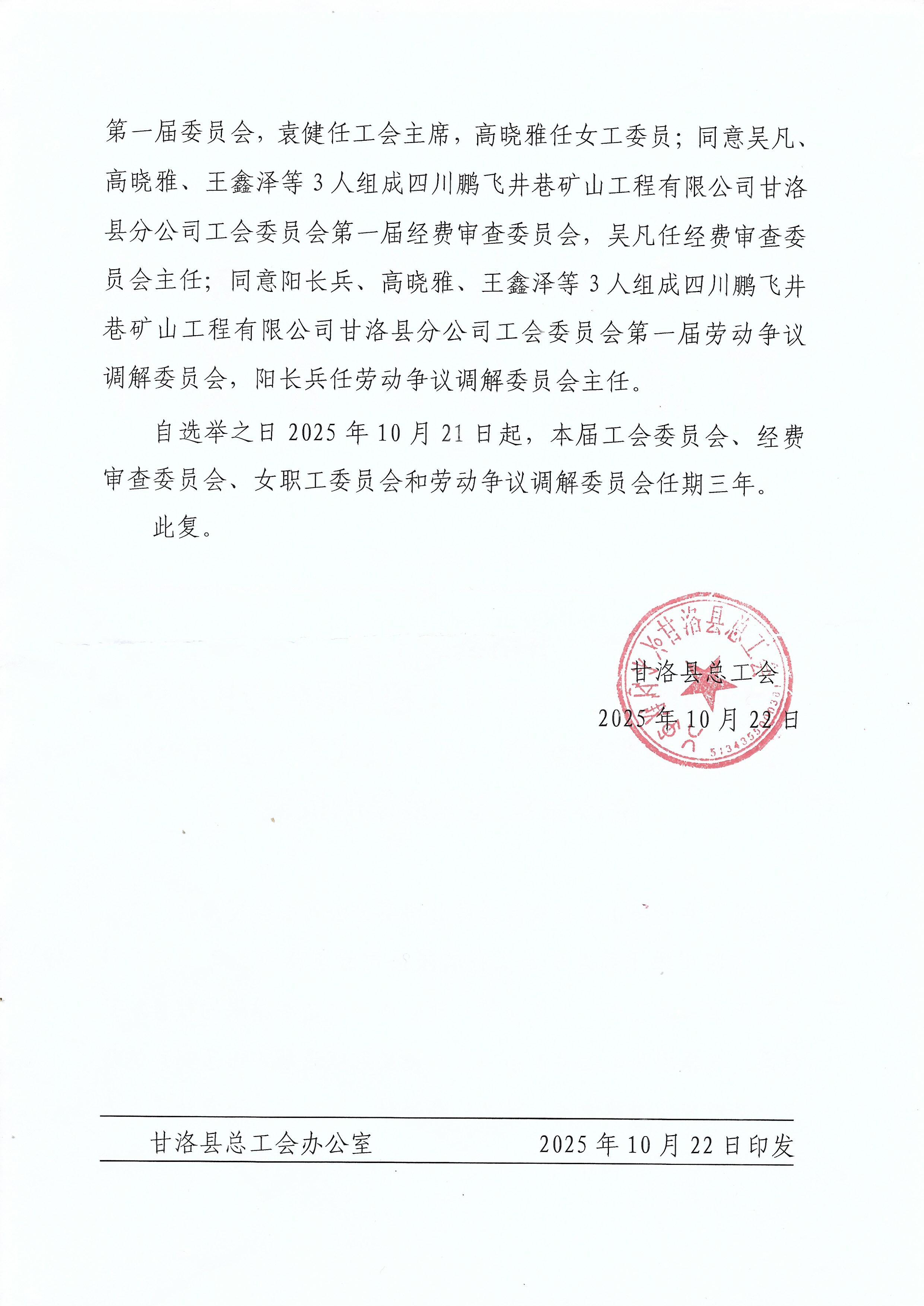 甘洛县总工会批复选举结果
